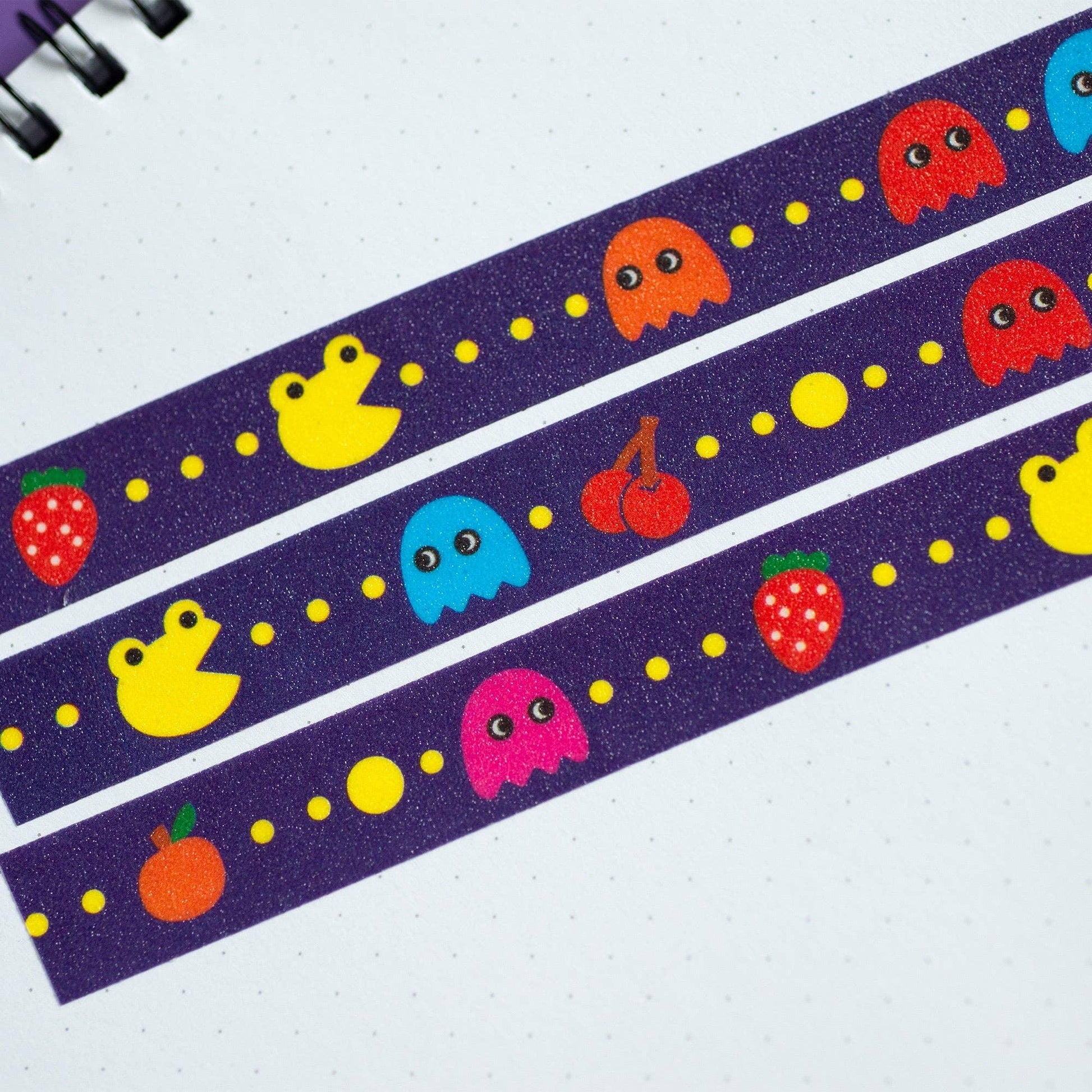 Froggy Retro Arcade Game Glitter Washi Tape This washi tape is probably going to make you go hunt down some quarters. Some details about this washi tape: 15mm wide x 5-meter long roll of washi tape.