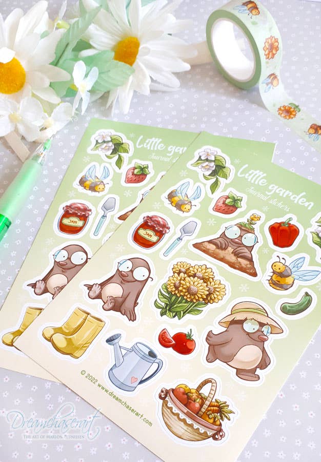 Cute Garden themed sticker sheets featuring little moles and bees and garden attributes.