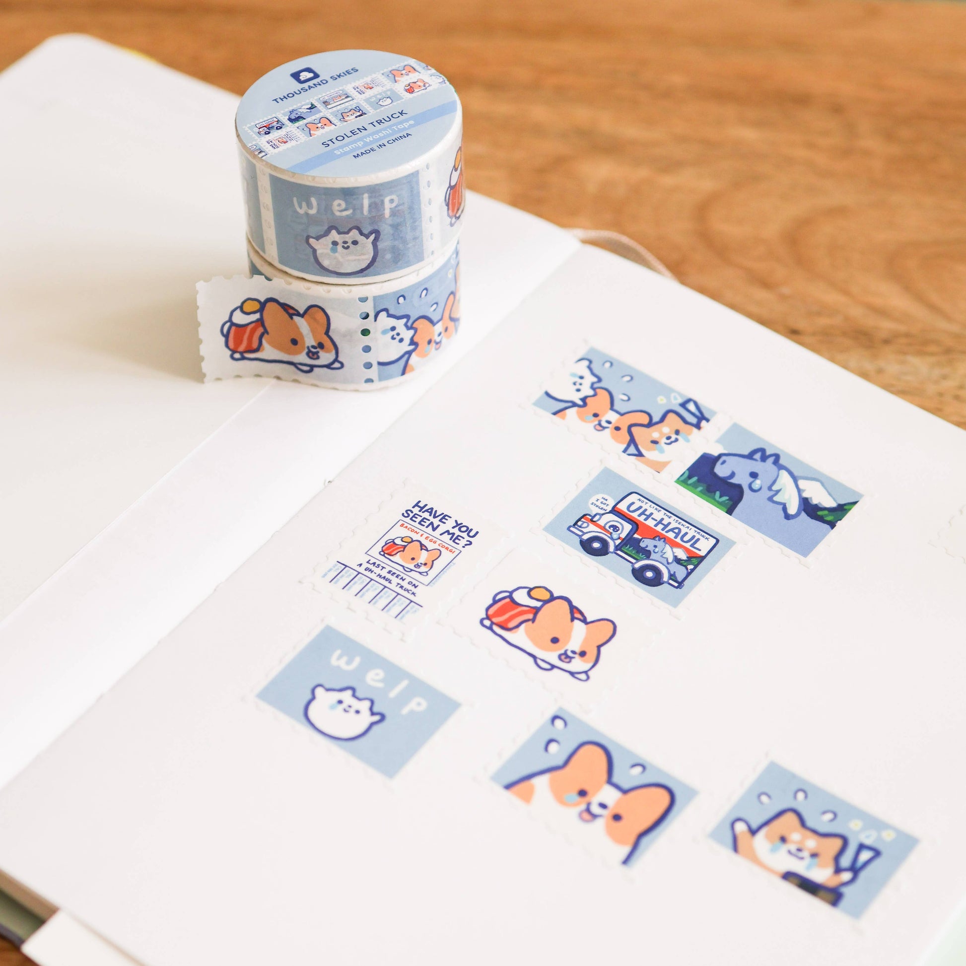 Add a touch of whimsy to your spreads with the Stolen Truck Stamp Washi Tape by Thousand Skies. This premium design is perfect for adding character to your bullet journal, planner, or snail mail.